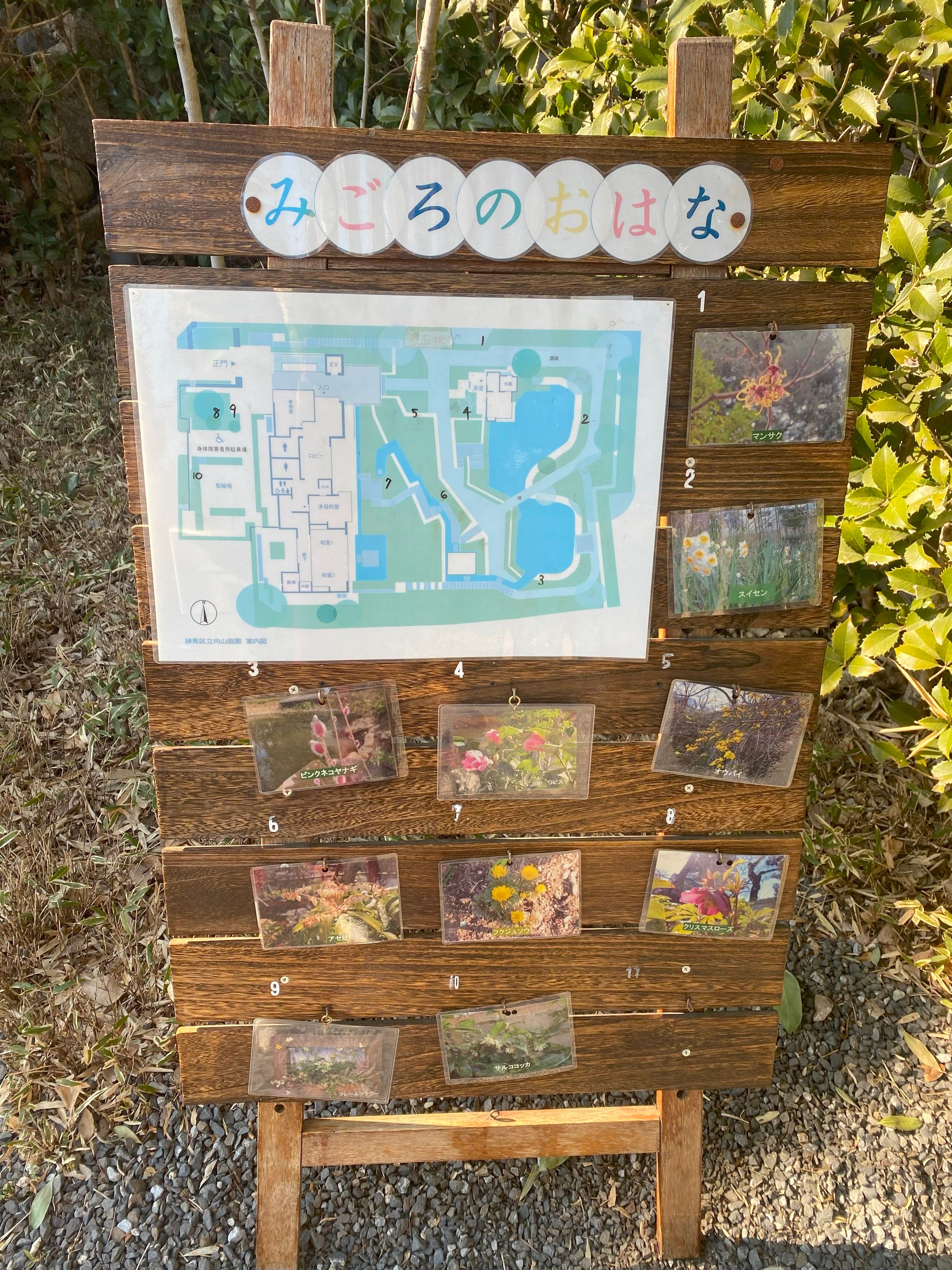 The entrance of the garden. There is a map showing where you can find the flowers.