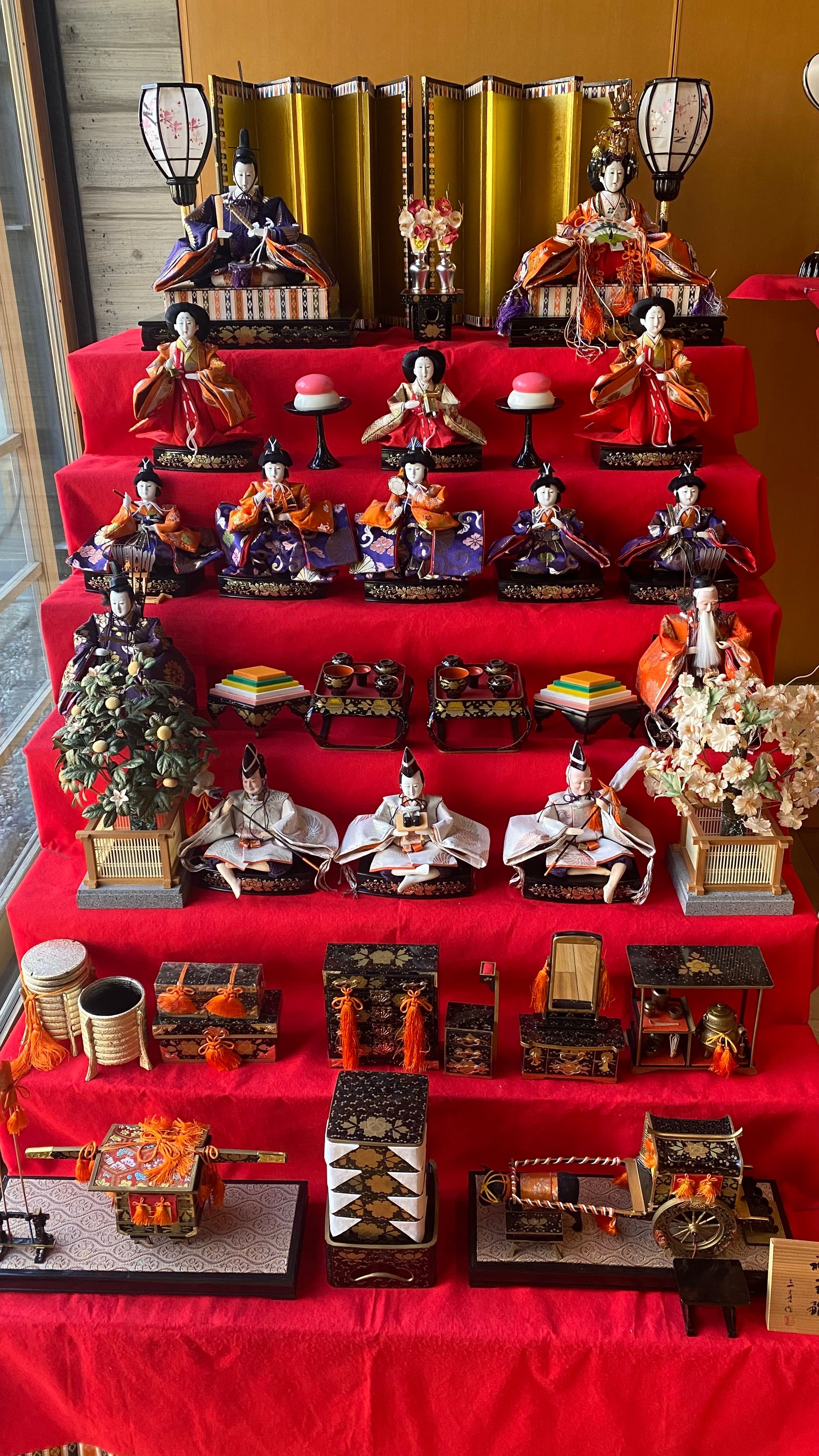 Hina doll set exhibition for Hina festival (Girl's day), a festive day to celebrate and wish for better health and growth for young girls. The ones exhibited here are full doll sets. Apparently the doll set is quite expensive. Therefore, modern families tend to have a smaller set to save money and space. Â